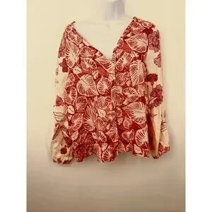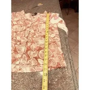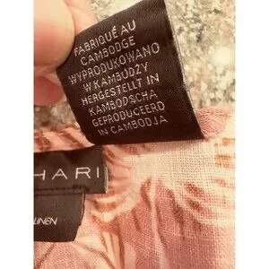 Tahari Linen Shirt Top Blouse Tunic Floral Machine Washable Women's Size M