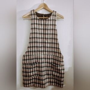 Zara Trf Collection Checkered Mini Pinafore Dress