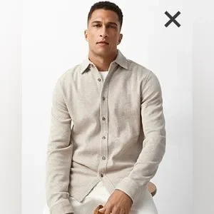 This Simons shirt in a warm tan hue offers a relaxed yet tailored fit, perfect for casual ever day outings. Its button-down design and waffle texture makes it a versatile addition to any wardrobe. 100% organic cotton