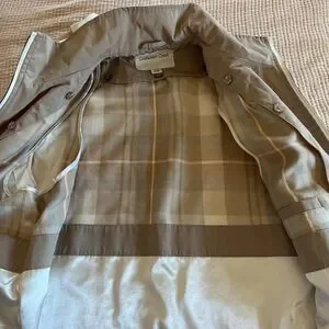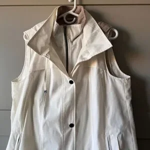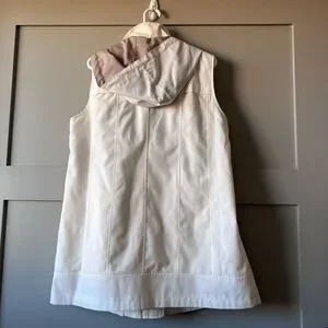 Coldwater Creek Women Ivory Hooded Long Vest Jacket Petite Large Water Repellent