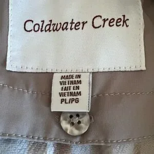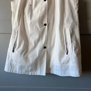 Coldwater Creek Women's Ivory Hooded Long Vest Jacket Tunic Size Petite Large Water Repellent Neutral Outdoor Zip Button $139