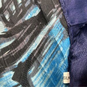 100% Silk Scarf – Colorful Blue Green Orange Abstract Art – Square 32.5” x 35”