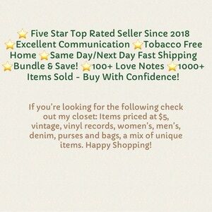⭐️ Five Star Top Rated Seller Since 2018 ⭐️Excellent Communication ⭐️Tobacco Free Home ⭐️Same Day/Next Day Fast Shipping ⭐️Bundle & Save! ⭐️100+ Love Notes ⭐️1000+ Items Sold - Buy With Confidence!
