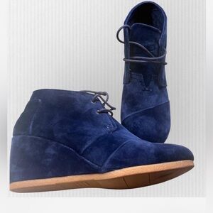 Toms Dark Blue crushed velvet Women's Wedge booties rich velvet witch booties