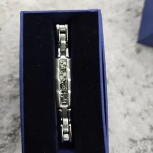 New elegant men's bracelet by Swarovski. Features a sleek silver design. Perfect for any occasion.