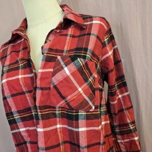 Isabel Maternity Women's Maternity Plaid Flannel Popover Tunin Top, Red - SMALL