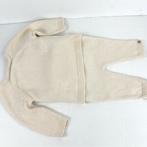 Cute 2 piece set by M & S (British label Marks & Spencer) consisting of a button closure wrap long sleeve sweater with bear face embroidery and a matching pull on jogger bottom with button trim.