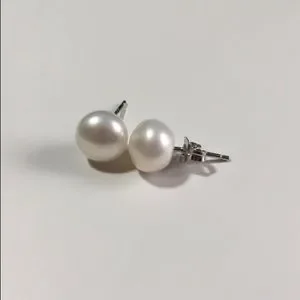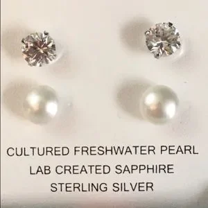 Sterling Silver Earrings Cultured Freshwater Pearl Lab Created Sapphire Comes in a cute gift box