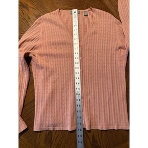 Kate Hill Pink Silk Button Down Cable Knit Cardigan Size XL