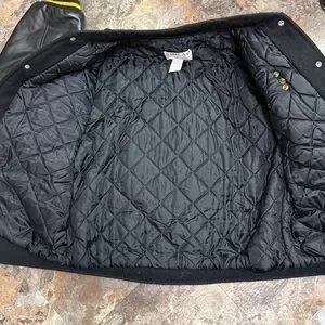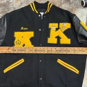 Black and Yellow Varsity Jacket with Leather Sleeves 2001. Men’s L