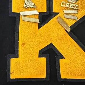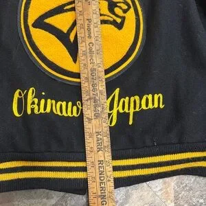2001 varsity letterman’s jacket from Kadena High, Okinawa, Japan. Men’s size L. Stains or spots in pictures