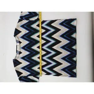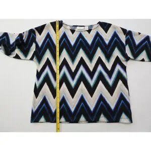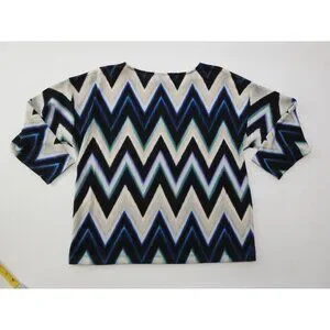 Chicos Blue Black Chevron Zig Zag Stretch Knit Top Size 1 Med Boat Neck