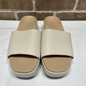 VIONIC Plateau Leather Slides Platform Slip on Sandals Beige Orthotic Size 10