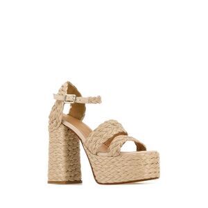 Plateau: 5 cm Heel height:12 cm Exterior: 100% Raffia Interior: 100% Leather Sole: Rubber