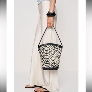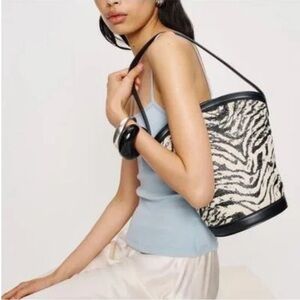 Carry me. Shop the zebra animal print beaded Shoulder Bag from reformation Zara Simon miller aritzia staud free people anthropologie NWT & Dustbag REFORMATION AURORA SHOULDER BAG BEADED SHOULDER BAG in black/bronze ZEBRA PRINTED SHOULDER BUCKET BAG
