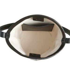 Smooth trims and finely woven raffia bring textural interplay to a roomy bucket bag suspended from a slim shoulder strap for comfortable carry.