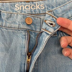 Mother Snacks High Waisted Twizzy Skimp Jeans Size 26 Just A Nibble Wash Light Blue Denim