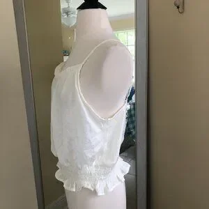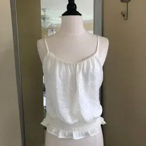 Glam White Ruffle Ruched Camisole Top Size Medium