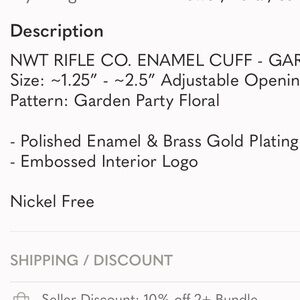NWT Rifle Paper Co. Brass gold tone plated & enamel cuff - GARDEN PARTY design