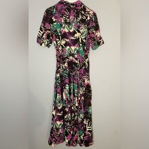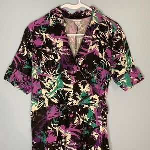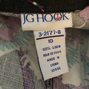 Vintage JG Hook Linen Dress Size 10 Women’s Faux Wrap Dress Belted Black Teal