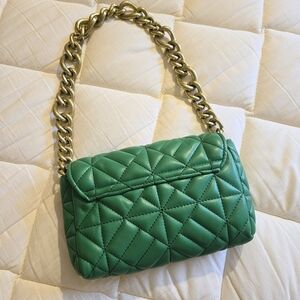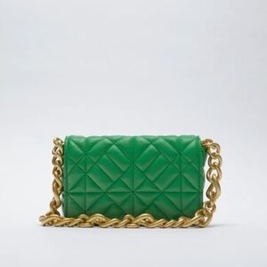 ZARA Green Puff Faux Leather Quilted Gold Chain Shoulder Bag