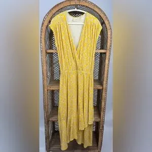 Anthropologie Maeve Fete Yellow Midi Dress Size M V-Neck Handkerchief Hem