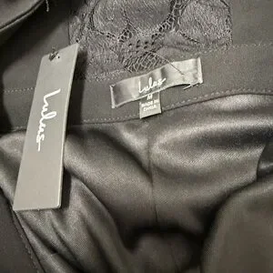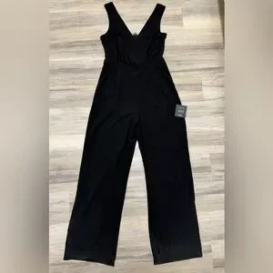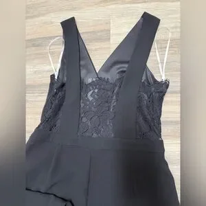Keywords: Lulus jumpsuit, black formal jumpsuit, lace back, wide leg, wedding guest outfit, evening jumpsuit, cocktail attire, elegant, chic, size medium