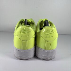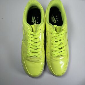 This listing is for a pair of mens size 9.5 Nike Air Force 1 shoes in a bright 'volt' color. These shoes are pre-owned, in good overall condition. No rips or tears. A couple scratches on the uppers. Soles could use a cleaning. Minor tread wear. Lots of life left. Please see photos for details.