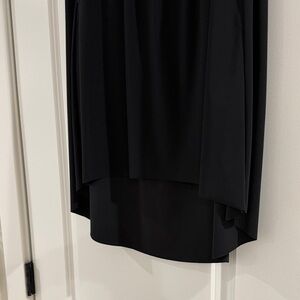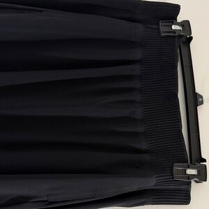 Chic high low design. Perfect for versatile styling. Comfortable fit. Zippered side pockets. Elastic waist. Super comfy and easy to wear for busy days
