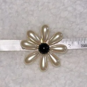 These elegant pearl flower earrings feature a stunning gold and black design, perfect for adding a touch of sophistication to any outfit.