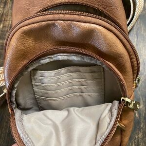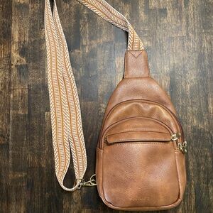 Stylish brown leather crossbody bag with adjustable strap. Perfect for everyday use.