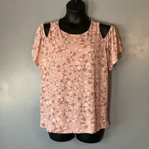 Kaileigh pink floral cold shoulder stretch blouse