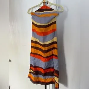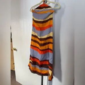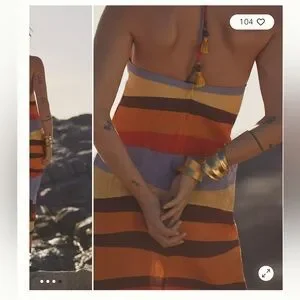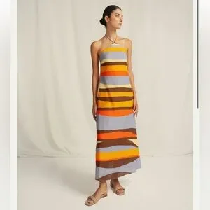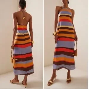 Halter style backless long dress with self tie straps and zipper closure. Made from 100% linen.