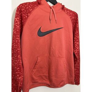 Nike Dri-Fit Hoodie Sweatshirt Women's Thumb Hole Cuffs Graphic Print Red Large