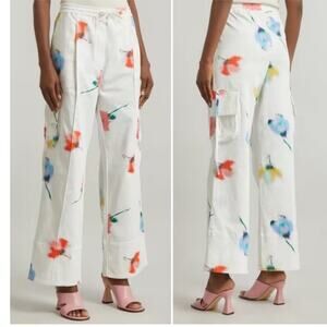 SLEEPER NWT Safari Flower Print Cargo Wide Leg Cotton Pants Women's Size L/XL
