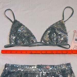 Dazzling silver sequin bralette with matching skirt. Perfect for a night out. Last photo is model in the same outfit but different color prom party summer spring dress