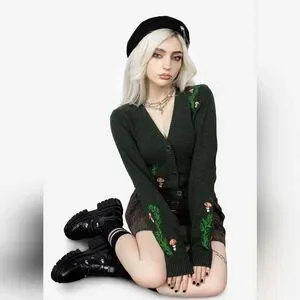 Cozy green cardigan sweater with delicate adorable embroidery.