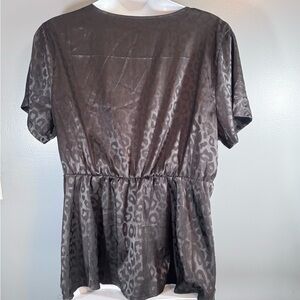 SHEIN Curve 3XL Leopard Satin Wrap Peplum Top