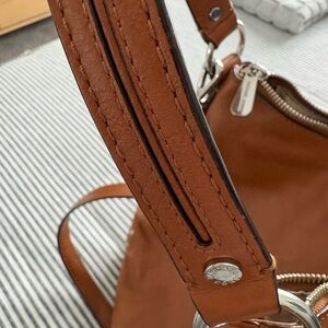 Stylish brown leather shoulder bag with silver accents. Perfect for everyday use.