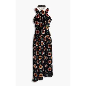 B51 Paco Rabanne Floral Velvet Midi Dress 8 Gold Chain Halter Flowy Cocktail