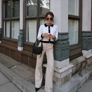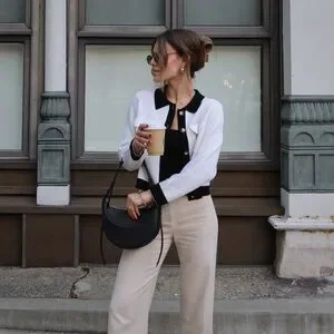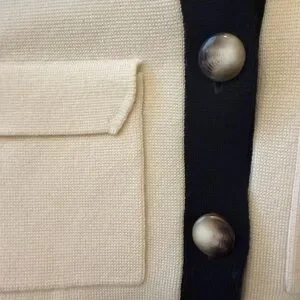 Elegant black and white cardigan. Features a classic buttoned front. Perfect for layering.
