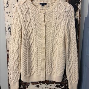 Lands' End Ivory Cable Knit button down Cardigan. Women’s size small.