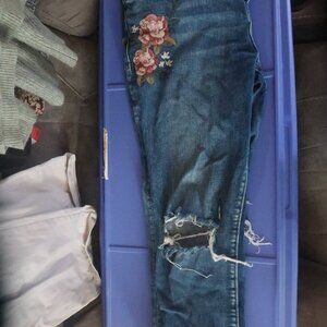 Flower embroidered Capri Jeans by Silver. My size has changed, and these were some of my favorite mix-it-up, distressed style spring jeans to wear.