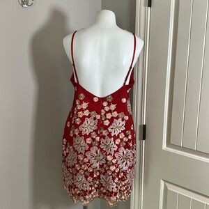Free People x Backstage Australia Red Floral Dress Embroidered Lace Lined Sz M