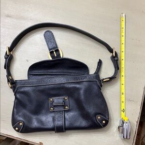 Elegant black leather shoulder bag with gold accents. Perfect for any occasion. This purse is in great condition used very little.