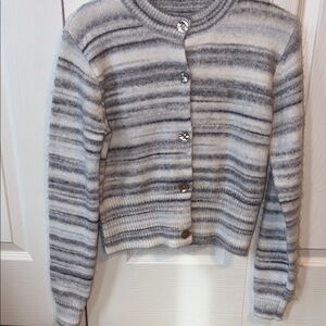Chic striped cardigan with button closure. Soft and comfortable for everyday wear.