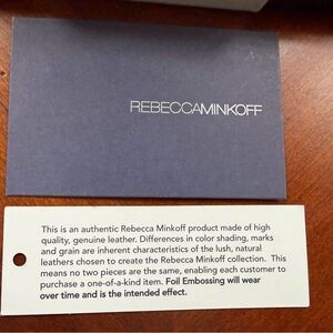 • Very small gold Rebecca Minkoff logo opposite side bottom center