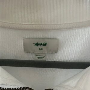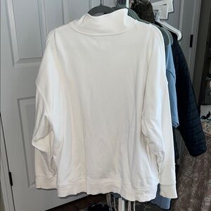 Classic white zip-up sweater by Aerie. Features convenient front pockets. Ideal for layering.