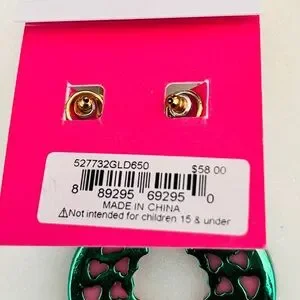 • Materials: Gold-tone metal, pink and green crystals, and glass stones