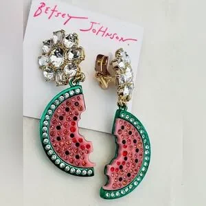 Betsey Johnson Faux Stones & Crystals Backyard Watermelon Drop Earrings (NWT)